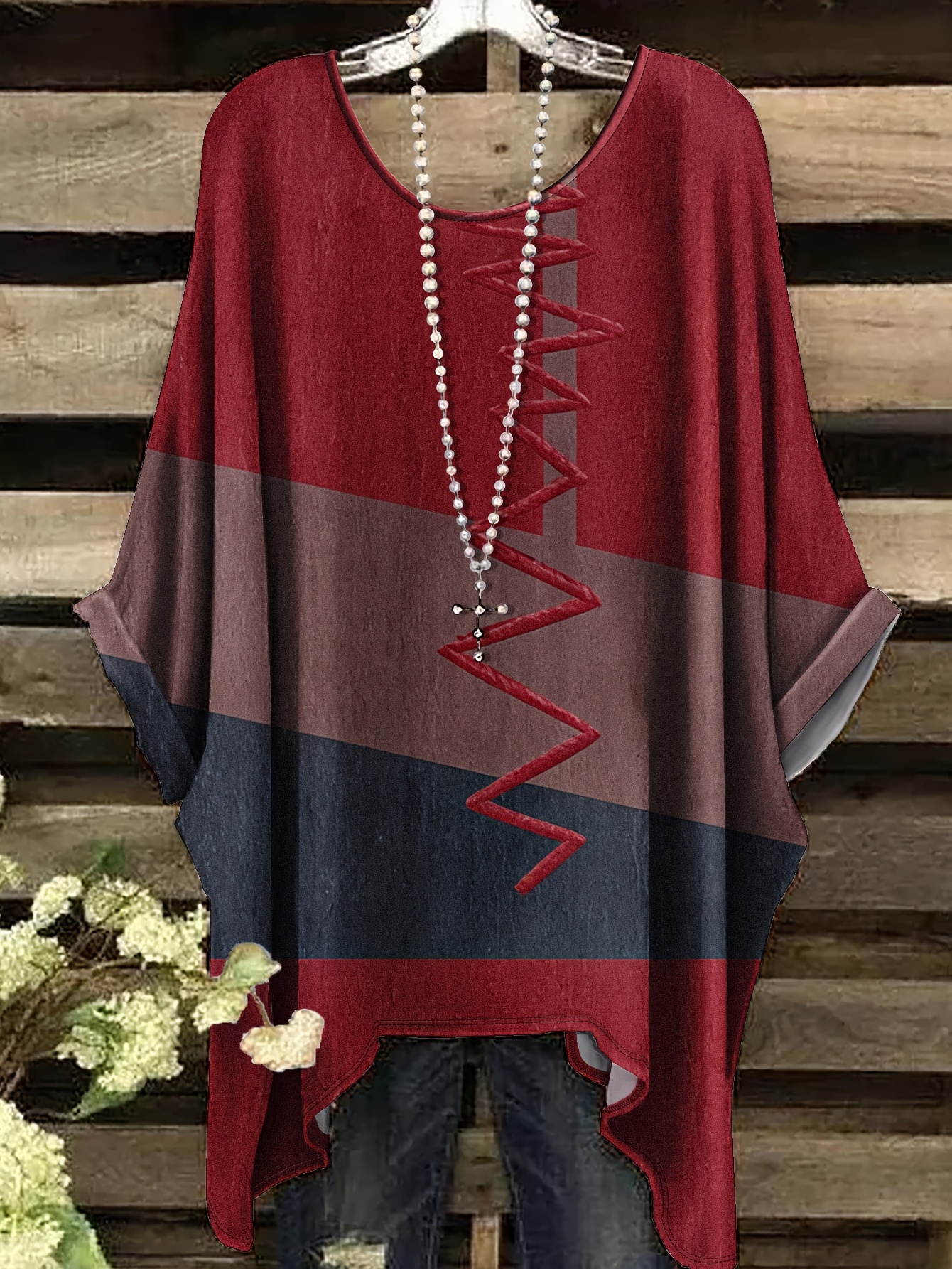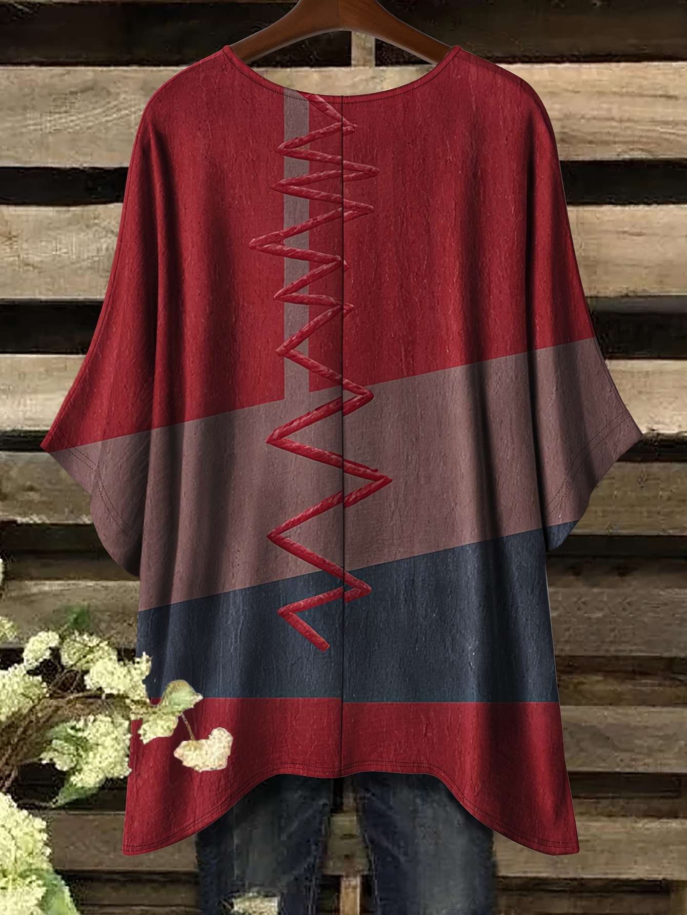 [Summer Tee] Plus Size Summer Color Block Turtleneck Tee | Casual Comfort Round Neck Short Sleeve Oversized Shirt for Women, Unadorned