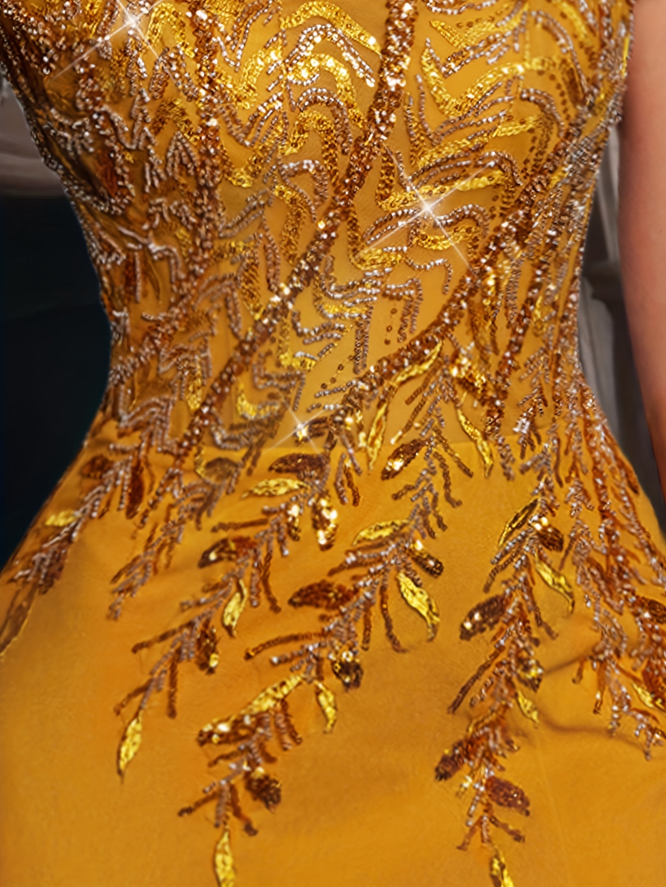 [Elegant Sequin Gown] Glamorous Elegant Off-Shoulder Sequin Gown for Women | Bodycon Mermaid Tail with High Slit, Long Formal Party Dress for Weddings, Galas & Evening Events, Solid Color Evening Wear