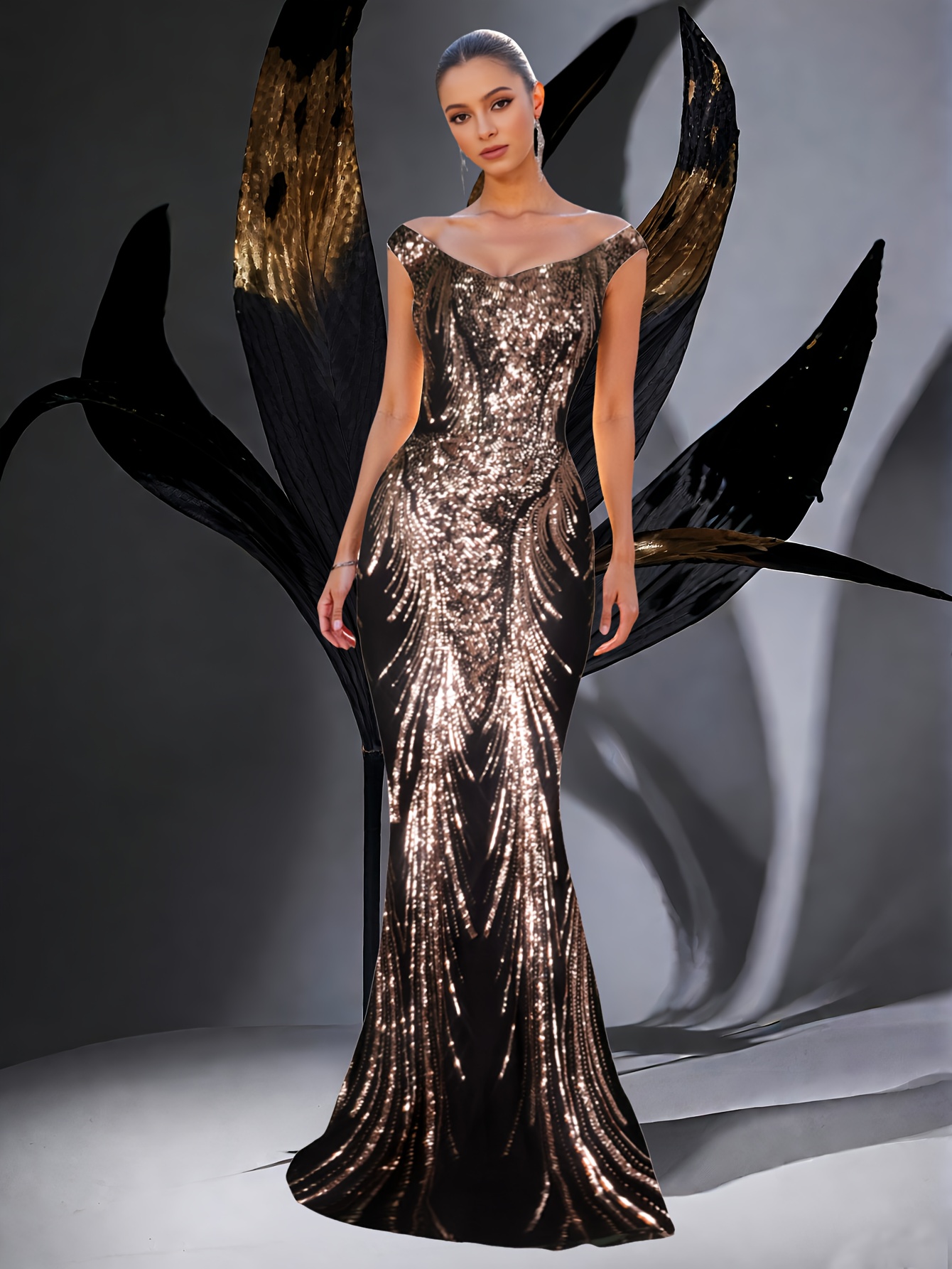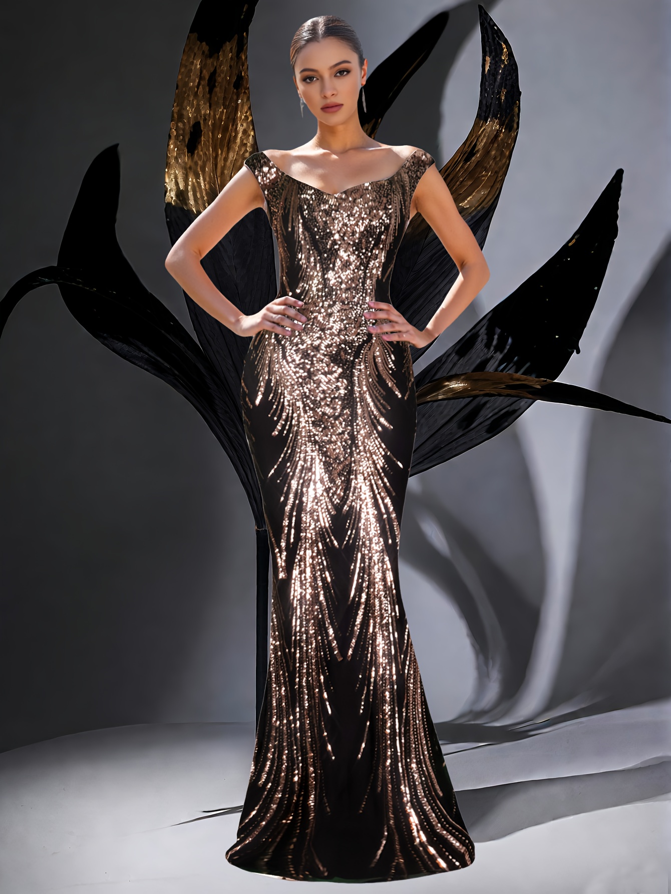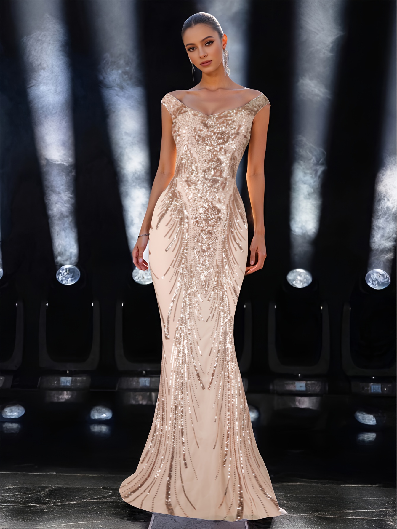 Exquisite Elegant U-Neck Waist-Cinched Fishtail Dress with Beaded Rhinestone Embellishments – Glamorous Evening Gown for Banquets, Awards Ceremonies, Weddings, and Graduation Parties