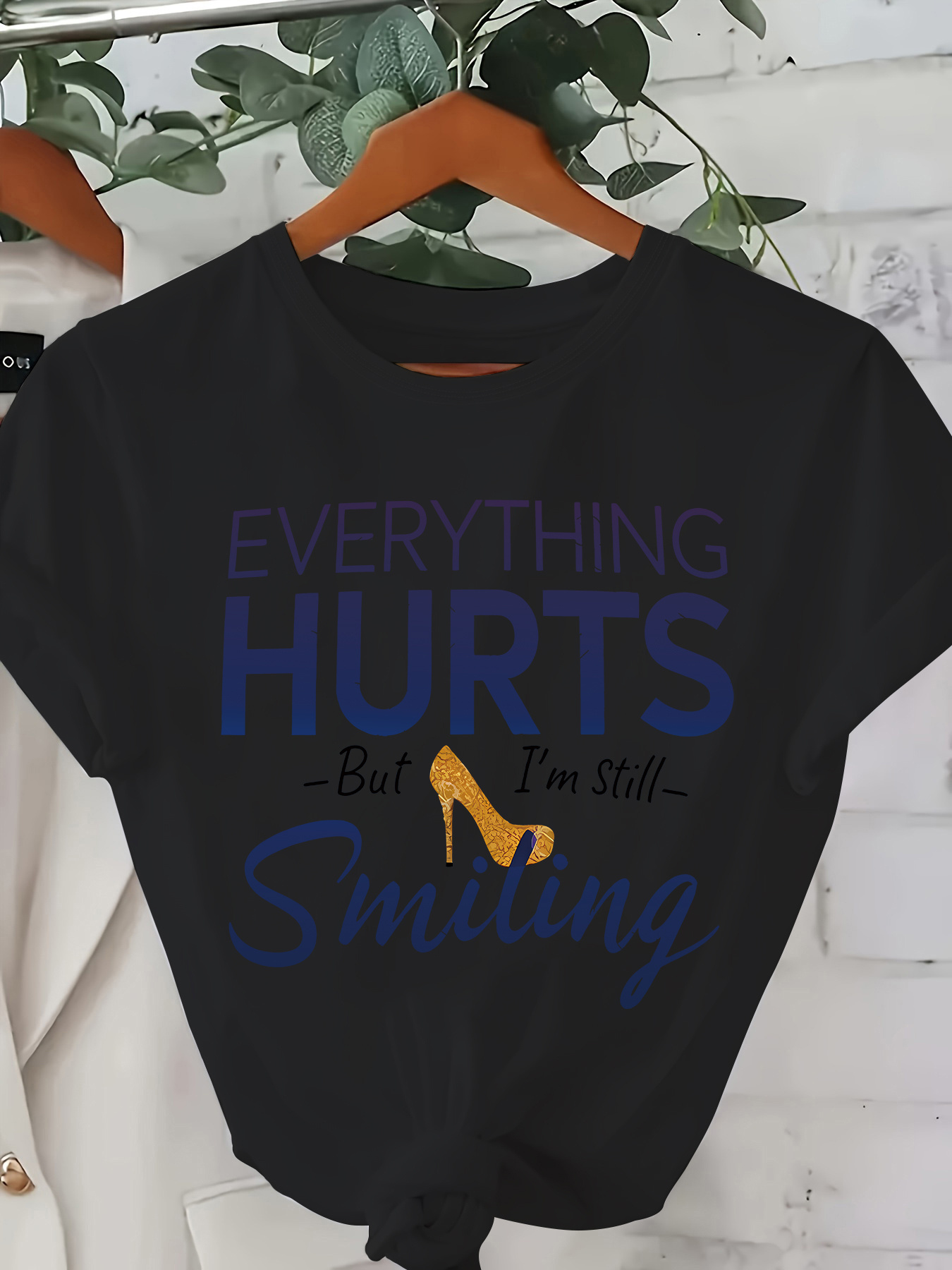 Plus Size, Women's Funny "Everything Hurts But I'm Still Smiling" T-Shirt with Heart & joyful Face Design - Red Casual Short Sleeve Round Neck Tee, Plus Size 0-8XL, Soft Polyester/Elastane Blend for Everyday Comfort & All-Season Wear
